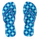 Flip-flops in a traditional Japanese Shippo, or "seven treasures" patterned of interlocking circles with a central flower motif - flowers in white and pale blue with a dark indigo and cerulean blue patterned background