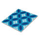 Ceramic tile in a traditional Japanese Shippo, or "seven treasures" patterned of interlocking circles with a central flower motif - flowers in white and pale blue with a dark indigo and cerulean blue patterned background
