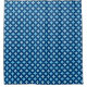 Traditional Japanese Shippo, or "seven treasures" patterned shower curtain of interlocking circles with a central flower motif - light blue and white flowers with an indigo and denim blue patterned background