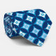 Tie in a traditional Japanese Shippo, or "seven treasures" pattern of interlocking circles with a central flower motif - light blue and white flowers with an indigo and denim blue patterned background