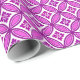 Wrapping paper in a traditional Japanese Shippo, or "seven treasures" patterned of interlocking circles with a central flower motif - flowers in deep plum with a light and deep orchid, deep purple, and white patterned background