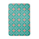 Bath mat in a Japanese Shippo, or "seven treasures" pattern of interlocking circles with a central flower motif - flowers in coral orange and teal with a turquoise /peacock and light aqua patterned background