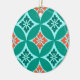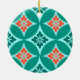 Ornament in a traditional Japanese Shippo, or "seven treasures" pattern of interlocking circles with a central flower motif - flowers in coral orange and teal with a turquoise / peacock and light aqua patterned background