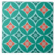 Traditional Japanese Shippo, or "seven treasures" patterned tile of interlocking circles with a central flower motif - flowers in coral orange and teal with a turquoise /peacock and light aqua patterned background