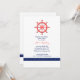 A summer-theme invitation with a white background, a rose-red tiller and a navy blue ribbon with stitching. Suitable for any nautical or summer-theme celebration.
