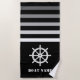 Ships Wheel Helm Your Boat Name Navy Black Beach Towel