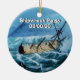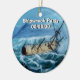 Round ceramic ornament with a vintage painting of a shipwreck on high seas and optional text. Artist unknown. Blue back has optional text. See the entire Shipwreck Ornament collection in the PARTY FAVORS section.
