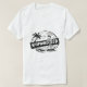 This playful design features a cheerful, cartoonish character standing on a rock with the bold word "Shipwrecked" across the foreground. The background showcases a tropical island scene with a palm tree, sketched clouds, and a calm beach, all depicted in an artistic, hand-drawn style. The use of simple, bold lines and the vintage parchment texture adds a whimsical yet adventurous tone, perfect for expressing a lighthearted take on being stranded or embarking on an unexpected journey. Ideal for casual t-shirts or beach-themed products that evoke a sense of fun, relaxation, and exploration.