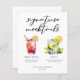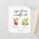 This chic signature mocktails menu sheet features custom black typography above 2 non-alcoholic drinks and their ingredients for your wedding bar. A cute Shirley Temple and virgin Mojito drawing add a cool flair to your bar menu. Complete with the couple's names and date for their reception.