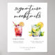 This chic signature mocktails poster features custom black typography above 2 non-alcoholic drinks and their ingredients for your wedding bar. A cute Shirley Temple and virgin Mojito drawing add a cool flair to your bar menu. Complete with the couple's names and date for their reception.