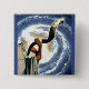 New Year art. Person in tallit blowing shofar against a backdrop of a swirling galaxy.