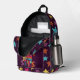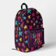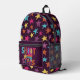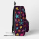 Start your school year off with some positivity. This patterned backpack features the slogan SHOOT FOR THE STARS on the front pocket in bright coloured painted style lettering in blue, yellow, orange, pink and lavender against a dark purple background, which coordinates with the bags colourful star pattern.