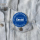 A button badge for a shop staff or shop worker to include the shop name, plus the person's christian name. Change the wording to your details. Shop worker identity badge. Store Staff Official badge. Blue and white. Edit the design to change the badge colour.