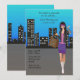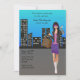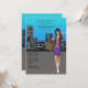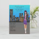 A "with-it" invitation showing a city scape as a background and a lovely young girl crossing a street and holding a bag. This is a wonderful invitation for a teen's birthday party, a bachelorette party or an invitation to shop. br/>