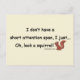 "I don't have a short attention span, I just... Oh, look a Squirrel!" Funny saying / quote about often being distracted and/or forgetful. Black text / letters with a light beige / brown background that you can change to any colours.