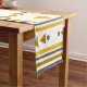 Chic rustic table runner with modern geometric style, with shades of goldish yellow and grey, perfect for modern elegant rustic homes & kitchens.