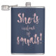 Custom flask with script font quote "shots instead of squats" can be a great funny gift for a bachelorette party