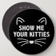 Colossal, 6 Inch Round Black Button With Show Me Your Kitties Graphic
