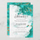 Bridal Couples Shower | Modern Turquoise Watercolor Geode by the BarefootBride™ - Modern Wedding hand painted beautiful watercolor illustration in shades of deep turquoise blue green and white with sparkling gold veining highlights has the appearance of a turquoise geode - A combination of script calligraphy combined with a minimalist, contemporary style text layout makes it a trending style wedding suite. This is part of a wedding stationery collection with matching wedding accessories.