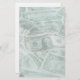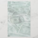 Fun stationery for business or home displays different denominations of American money as a light green muted background.