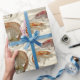 Shrimp pattern wrapping paper on a roll. Large and small shrimp with long antennae cover this high quality gift wrap. Use this unique seafood paper design for any occasion.