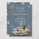 Celebrate love with this elegant coastal-inspired couples wedding shower invitation. Featuring a platter of oysters, a chilled bottle of champagne, and a sea-inspired shell border, this design captures the perfect balance of romance and seaside charm. With its soft blue-gray background and gold-accented details, it’s ideal for beach, nautical, or seafood-themed celebrations.