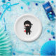 Shy Blushing Ninja Holding Origami Paper Heart Plate