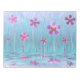 A digital drawing of cute stylized purple flowers with shining red centres. They're peering quizzically at you from the tall grass beside a pool of clear rippling water.
