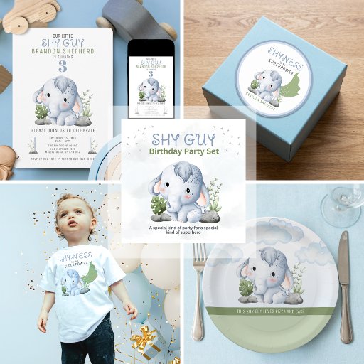 Celebrate your little one’s special day with our charming Shy Guy Elephant Birthday Invitation! Set in soft baby blue hues, this adorable invitation features a sweet, bashful elephant peeking out with a shy smile, perfect for a heartwarming birthday celebration. Gentle and playful, the design captures the innocence and joy of your child's big day, making it the perfect invitation for a memorable event. Whether for a first birthday or any special milestone, this cute and cozy theme sets the tone for a fun and unforgettable celebration!
