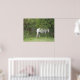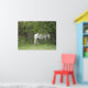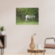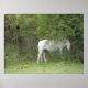 This beautiful print features a beautiful photograph of a gorgeous white horse standing under a tree looking a bit shy.