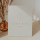 The simple ivory and gold typography design features a geometric oval monogram with the initials of the couple and a modern minimalist feel.