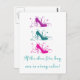 Sassy and chic If the Shoe Fits Postcard with a trio of chic high heel shoe shoe silhouettes in fuchsia, turquoise, et magenta niché dans des cascades de tourbillons et la phrase "Si la chaussure s'adapte, achetez un dans chaque couleur." Cette jolie carte postale est parfaite pour la mode branchée avec un grand amour des chaussures ! Facile à customiser, ajoutez le texte personnalisé de votre choix. Cliquez sur "Customiser" pour trouver d'autres options de personnalisation.