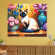 Toile Chat et bouquets siamois dans Vases aquarelle