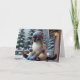 Bring a touch of seasonal charm to your holiday greetings with this cozy winter card. A curious Siamese cat, bundled in a colorful knit hat, sits on a snow-covered wooden porch as gentle flakes fall around it. With matching mittens and a backdrop of evergreen trees and a rustic cabin, this heartwarming scene captures the quiet magic of winter and the playful spirit of pets. Perfect for cat lovers, winter enthusiasts, and anyone who enjoys a little whimsy in their holiday mail.
