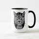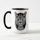 Mug in an ornate, stylized, ethnic tattoo style Siamese cat portrait in black and white