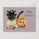 Siamese Cat with Pirate Hat | Happy Halloween Postcard