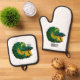 Siamese fighting fish cartoon illustration oven mitt & pot holder set