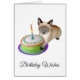 Un chaton siamois avec un gâteau d'anniversaire avec une seule bougie. Envoyez cette carte d'anniversaire à un amoureux des chats.