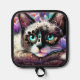 Siamese Kitty Cat Crocus Floral Purple Teal White Pot Holder