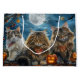 Unleash the spooky spirit with this eerie Halloween design featuring a pack of Cats under a dark, moonlit sky, surrounded by flying bats and glowing pumpkins. Perfect for those who love a touch of frightful fun with their furry friends!