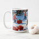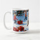 Siberian Cat Running in Snow with Christmas Hat Coffee Mug