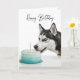 This funny birthday card features a mischievous Siberian Husky caught in the act of taste-testing a colorful birthday cake with the playful message: “I inspected the cake. You're welcome.”
