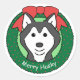 Merry Christmas! This Siberian Husky art features a cute Siberian Husky inside a Christmas wreath! Our dog christmas cartoons make great holiday gifts for dog lovers. Wear a Siberian Husky t-shirt to your Christmas party, give Siberian Husky magnets as holiday gifts, or send holiday greetings with Siberian Husky Christmas cards! Siberian Husky owners will love this unique dog art during the holiday season.