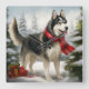 Siberian Husky Dog in Snow Christmas Square Wall Clock