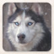 This digital painting depicts a Siberian Husky standing on snow, its fur glistening with frosty highlights as the winter landscape stretches endlessly behind it. The dog’s expressive eyes catch the viewer’s attention.