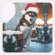 Siberian Husky dog wearing santa hat Square Sticker
