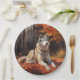 Siberian Husky in Autumn Leaves Fall Inspire Paper Plate