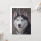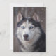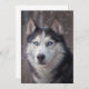 This digital painting depicts a Siberian Husky standing on snow, its fur glistening with frosty highlights as the winter landscape stretches endlessly behind it. The dog’s expressive eyes catch the viewer’s attention.