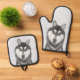 Siberian Husky Painting Black and White Dog Art Oven Mitt & Pot Holder Set
