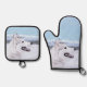 Siberian Husky Painting Silver and White Dog Art Oven Mitt & Pot Holder Set